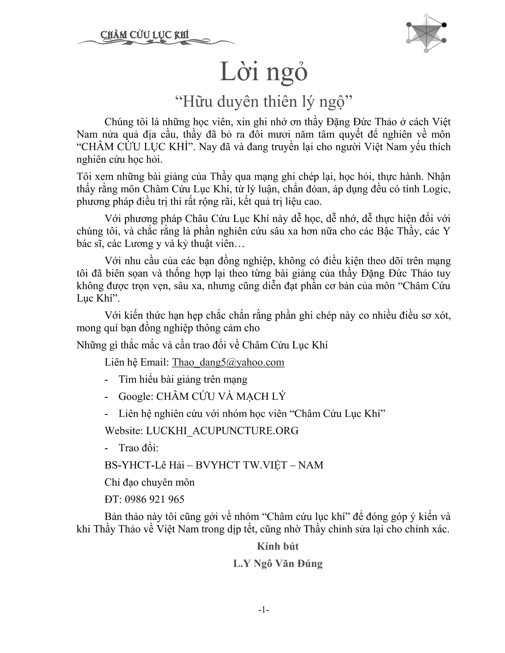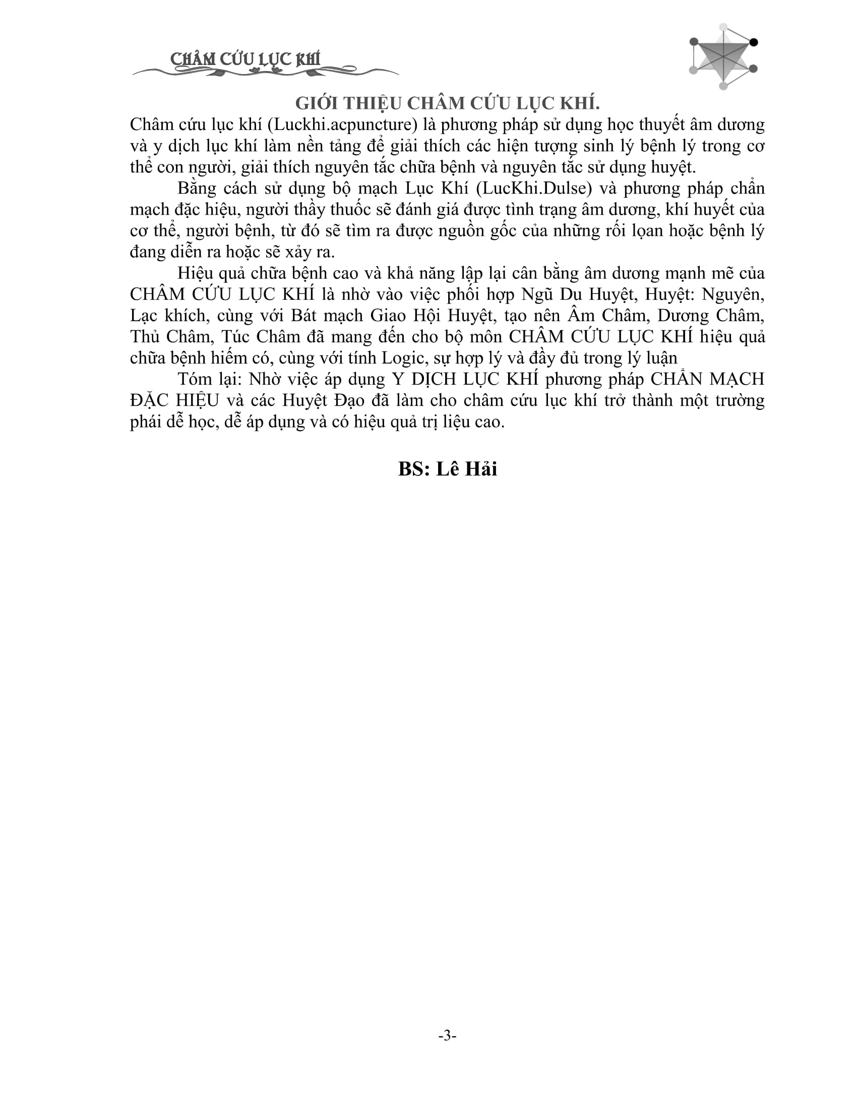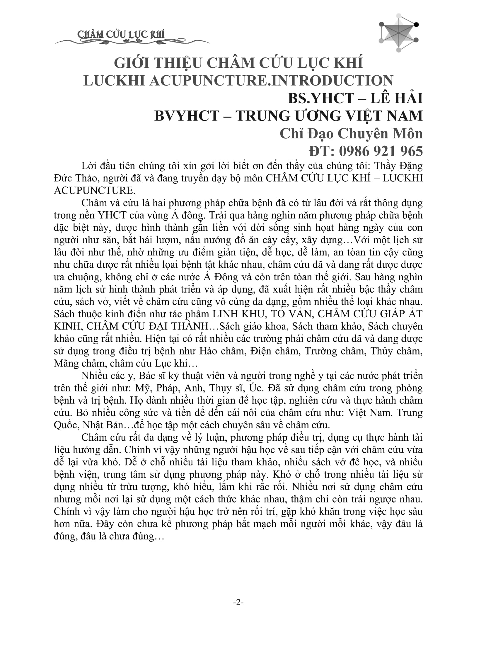 GIỚI THIỆU CHÂM CỨU LỤC KHÍ.